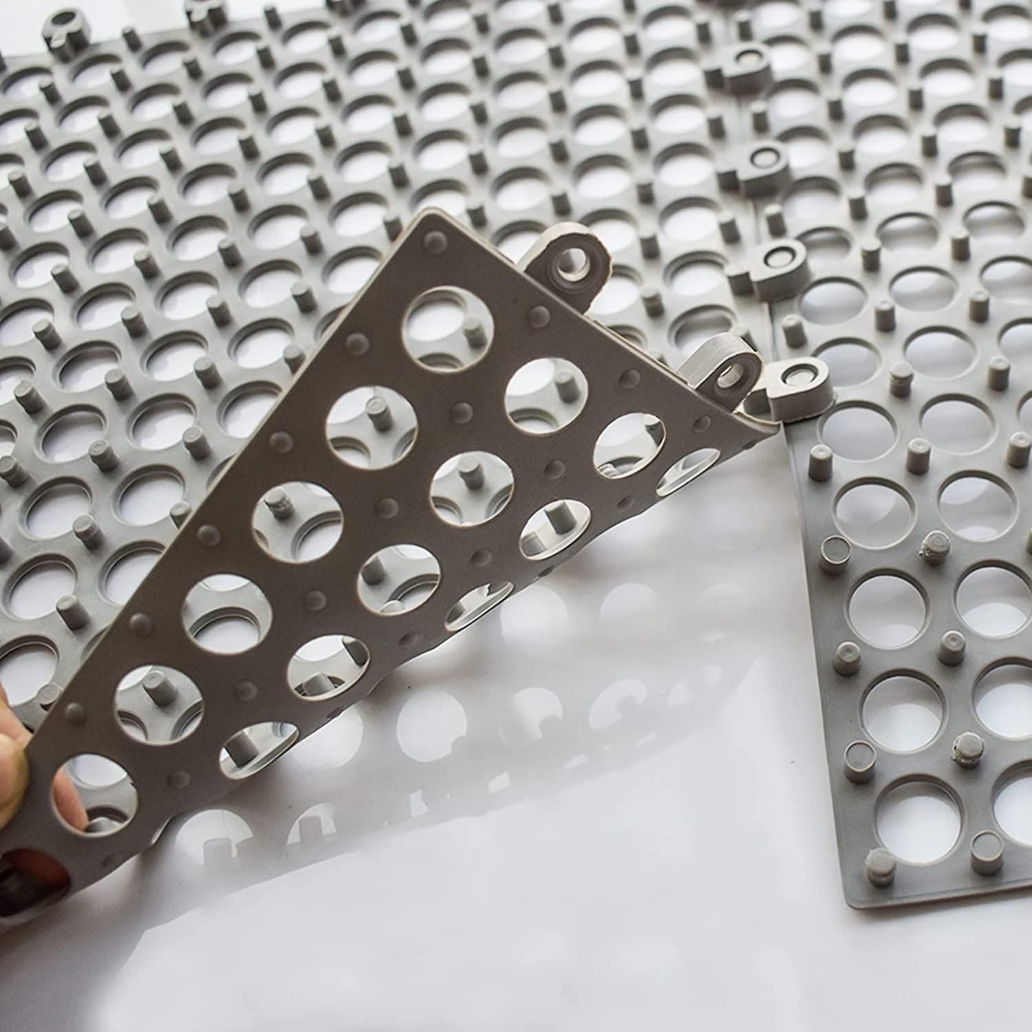 Interlocking Drain Floor Matting: Installation for the mat tiles is as simple as piecing together a puzzle; The drain tiles have 2 adjacent male and 2 female edges, so you can simply snap the tiles into place to create a beautiful, customizable floor surface; You can cut the PVC cushion tiles with a utility knife to meet the different needs of your floor covering