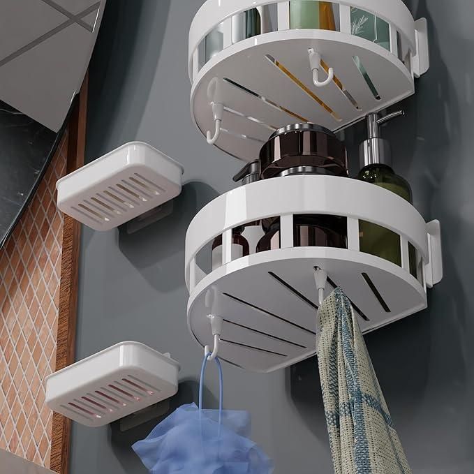 Each shelf features multiple hooks, allowing you to hang razors, loofahs, towels, brushes, and other accessories conveniently. Compact yet spacious, these wall-mounted shelves maximize your storage without taking up extra space, making them ideal for bathrooms of any size. Lightweight at 400 gm, they are easy to install and reposition without drilling or damaging walls.